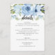 Modern Light Blue Dusty Blue Navy Floral Watercolor Botanical Foliage Summer Winter Wedding Details Enclosure Card