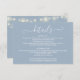 Eine elegante dustig blaue Hochzeitskarte mit hübschen Saitenleuchten. Personalisieren Sie mit Ihren besonderen Details Set in stilvoller Typografie und Ihre Namen und Hochzeitsdatum auf der Rückseite. Entwickelt von Thisisnotme©