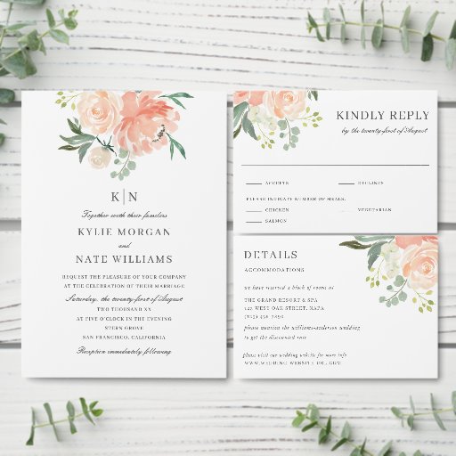 WEDDING | Soft Peach Floral MonogramDesignt von Kerry Doyle