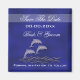 Drei Delphine springen aus dem Meer und sind von Vorlagen in Weiß auf Kobalt / Marineblau gerahmt. PERSONALISIEREN SIE IT - Ändern Sie den Wortlaut, um Ihre besondere Hochzeit, Verlobung oder Jubiläum Anzug.