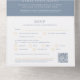Dusty blau und goldfarben auf weißem grafischem Gold Effekt Herz mit Monogramm Hochzeit All-in-One Einladung mit QR Code Antwort Option. Personalisieren Sie diese abnehmbare Antwort Hochzeitseinladung mit Ihren eigenen Einzelheiten der Hochzeitsfeier, fügen Sie Ihre Essensoptionen zu Ihren abnehmbaren Antworten hinzu und fügen Sie Ihren eigenen QR-Code in Farbe #879baf ein, wenn Sie Hilfe bei der Codegenerierung und Designänderungen benötigen, kontaktieren Sie mich bitte. Andere Farben und passende Hochzeitsartikel sind erhältlich. © Original Herzkunst und Design von Sarah Trett für www.mylittleedenweddings.com auf Zazzle.