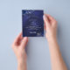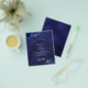 Bitte beachten Sie, dass diese Einladung auf Flyer Papier und sehr dünn ist. Umschläge sind nicht enthalten. Für dickere Einladungen (gleiche Gestaltung) besuchen Sie bitte unseren Shop. Marineblau, mit blauen Blumen und Rose geschmückt. Die blaue Farbe ist ungleichmäßig. Personalisieren Sie Ihre Namen und Details und fügen Sie diese hinzu.