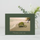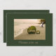Diese romantische Einladung zeigt nicht nur ein glückliches Paar im Hintergrund, sondern auch eine großartige Strandszene mit den Worten der Liebe auf einem grünen Blatt.