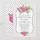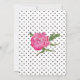 Stilvolle und romantische Hochzeitseinladung in weißem Hintergrund mit kleinen schwarzen Polka-Punkten. Ein vergoldeter, dekorativer, weißer Textbereich, inmitten der Einladung, hat ein wunderschönes Aquarellwerk aus rosa Blume. Personalisieren Sie den schwarzen Text für Ihren besonderen Tag. Matching Produkte sind erhältlich.