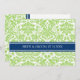 Hochzeitskarten in elegantem und zeitgenössischem, hellen Apfelgrün, dunkelblau und weiß klassisch und schick floralen Damast Vintagen Muster. Passen Sie diese Einladungen mit Ihren Hochzeitsdetails an. Erhältlich in passenden Produkten für alle Ihre Hochzeitsbedürfnisse.