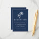 Diese marineblaue, tropische Empfang Hochzeitskarte mit Palmen steht oben. Bitte lesen Sie die Kollektion für die Erholung der passenden Hochzeitssuite und weiterer passender Produkte.