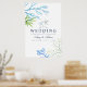 Trendy Marine und weißen Ozean Thema Hochzeitsempfang Poster mit Meeresfarnen, Algen und Seestern, die schnell und einfach auf Ihre Event-Besonderheiten angepasst werden.