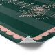 Hochzeitsthema mit Text in handgezeichnetem, rosa Rahmen mit rosa blühender botanischer Linie, zeichnend über smaragdgrünen Streifen Hintergrund.