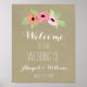 Individuelle Begrüßung in unserem Hochzeitsschild mit rustikalem Landbebenmuster und Vintager Frühlingsblütenillustrierung in hellrosa und korallenpfirsich.