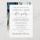 Moderne Ankündigung Datum freihalten für einen Empfang oder Party, um Ihre Entstehung oder kleine private Hochzeit zu feiern. Auf der Vorderseite steht "Save the Date für unser glückliches aller Party" in einer Mischung aus einfacher Typografie und elegantem Drehbuch mit Swashes, und Sie können Ihre Hochzeitsankündigung detaillierter personalisieren und den Empfang Save the Date Details und Ihre Namen in einem signaturähnlichen Drehbuch hinzufügen. Auf der Rückseite finden Sie Ihr Lieblings-Foto, Ihre Vornamen, Hochzeitsdaten und Empfang.