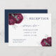 Hochzeitsempfang für Rose des Blue Floral Burgundy Begleitkarte