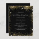 Ein moderner, eleganter Empfang. Schwarzer Hintergrund mit Imitaten goldenen Glitzer Glitzern. Personalisieren und fügen Sie Ihre Namen und Hochzeitsdetails. Weiße Buchstaben. 1 Blatt = 1 Einladung mit Druckkante bis Kante.