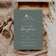 Diese weiße Silhouette Hochzeitsempfehlung lädt zu einem rustikalen Party nach dem Auftakt ein. Das Design zeichnet sich durch handbemalte klare Berge aus. RSVP-Karten werden separat verkauft, oder Sie können die UAWG auf der Rückseite oder am Ende der Karte sehen.
