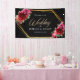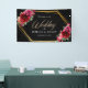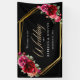 Eleganter, dunkelroter Bordeaux-Banner und schwarzer Hochzeitsempfang mit schönen Blume und grünen Blätter. Eine bezaubernde Mischung aus Eleganz und gotischem Charme. Diese wunderschönen Einladungen sind in schwarz und rot gehalten. Die Kalligraphie ist elegant und schick und lässt sich leicht anpassen. Romantische und moderne blumengeschmückte Hochzeitsfeiern mit klassischen Farben, die nie aus dem Stil verschwinden.