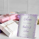 Ein Imitat silber aussehender Hintergrund, mit violettem, lavendelfarbenem Imitat Glitzer Glitzern. Mit dem Text: Willkommen zu unserer Hochzeit. Personalisieren Sie Ihre Namen und fügen Sie sie hinzu.