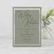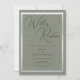 Schöne raffinierte Weise und silberfarbene Hochzeitsempfehlung Einladung. Trendy Salbei und Silberfarben für Ihren besonderen Tag. Romantische und modische Farben für Hochzeiten. Hübscher Salbeihintergrund mit glänzender silberner Grenze. Einzigartige, schicke und stilvolle Einladung für jede Jahreszeit. Alle Text-, Schriftart- und Schriftart-Farben sind vollständig an Ihre Anforderungen angepasst. Wenn Sie Hilfe bei der Anpassung Ihrer Produkte wünschen oder passende Produkte wünschen, kontaktieren Sie mich bitte über meinen Shop und ich werde Ihnen gerne weiterhelfen.