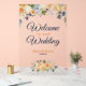 Passen Sie dieses schöne blaue und korallenblaue Schild "Willkommen bei unserer Hochzeit" mit Ihrer eigenen Touch an. Wenn Sie Hilfe oder passende Artikel benötigen, wenden Sie sich bitte an laura@purplecatarts.com