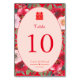 Hochzeitsempfang mit rotem Blumenkranz Tischnummer
