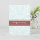 Hochzeitsempfang Einladungskarten für einen separaten Empfang in elegantem und zeitgenössischem Bornweinrot, hellblau und weiß elegant und schick klassisch floralen Damast Vintagen Muster. Passen Sie diese Einladungen mit Ihren Hochzeitsdetails an, um Ihre Gäste nach einer privaten oder Hochzeit in Urlaubsort zu Ihrer Feier einzuladen. Erhältlich in passenden Produkten für alle Ihre Hochzeitsbedürfnisse.