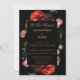 Hochzeitsempfang Party Einladung Dunkelrot und schwarz Blüte. Kupferfarbener Text ist vollständig anpassbar. Hintergrund der Blume. Auf der Rückseite der Karte befindet sich das Set in dunkelrotem Hintergrund, aber Sie können jede gewünschte Farbe auswählen. Unsere Hochzeitssuite ALEXANDRIA ist mit Blumen auf schwarzen und roten Hintergründen gefüllt, die alle mit einem kupferfarbenen Text versehen sind. Moody, elegant und modern.