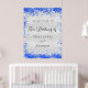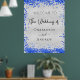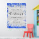 Ein silbernes Imitat, mit königsblauen Konfetti dekoriert. Mit dem Text: Willkommen zur Hochzeit von. Personalisieren Sie Ihre Namen und fügen Sie sie hinzu.