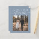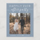 Haushaltsfreundliche staubblaue Entdeckung oder private Hochzeitsankündigung und Empfang oder Feier Party Einladung. Die Vorderseite zeigt "Happily Ever After Party" in der modernen weißen Typografie und ein stilvolles weißes Drehbuch mit Swashes, Ihrem Foto, Namen und Hochzeitstag. Auf der anderen Seite, personalisieren Sie Ihre Hochzeitsankündigung und Empfang-Einladung, erstellen Sie einfach einen QR-Code, der mit Ihrer Hochzeitswebsite verbunden ist, damit Sie Ihre Hochzeitsfeier, alle Einzelheiten und UAWG online sehen können, und fügen Sie Ihre Namen in einem signaturähnlichen Skript hinzu.