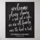 Ein elegantes Hochzeitszeichen mit der Prägung "Willkommen, bitte wählen Sie einen Sitzplatz, nicht eine Seite; wir sind alle Familie, sobald der Knoten gebunden ist" in einem extrovertierten Skript-Schriftart; die Pinseltextur fügt ein spontanes und spielerisches Gefühl hinzu. Die Hintergrundfarbe kann nach Ihren Wünschen und Vorlieben personalisiert werden; bitte nehmen Sie Touch mit mir, wenn Sie besondere Wünsche haben. BITTE BEACHTEN SIE: Für Unterstützung bei Bestellungen, Versand, Produktinformationen usw. wenden Sie sich direkt an den Zazzle Kundenservice https://help.zazzle.com/hc/en-us/articles/221463567-How-Do-I-Contact-Zazzle-Customer-Support-.