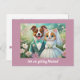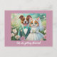 Niedliche KI-Bilder von einer Katze und einem Hund als Ehepaar in einer wunderschönen Blume Wiese mit den Worten "Wir werden heiraten". Sie können diese Postkarte ganz einfach mit Ihrem eigenen Text personalisieren und auch dann, wenn Sie mit Ihrem eigenen Bild gewollt haben und Sie die Hintergrundfarbe ändern können, indem Sie das Produkt bearbeiten.