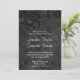 Hibiskus: Schwarz auf Chalkboard 5" x 7" Hochzeitsessen Probe Einladungen © Sunny Mars Designs. Stilvoll, modern, elegant, elegant, elegant, elegant, trendig, chic anpassbar Gothic Hochzeit Probe Dinner Einladungen mit schönen, prächtigen Goth Black Wirblen tropischen Hibiskus Design vor einem schwarzen Chalkboard Hintergrund.
