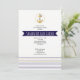 Gold, Marineschützer und Streifen nautische Hochzeit Probe Dinner Einladung. Dieses elegante und moderne Hochzeitsdesign am Strand besticht durch horizontale Streifen in Marineblau und Gold, die den oberen Teil der Karte abdecken, und einen goldenen Glitzer-Anker in einem goldenen Kreis.