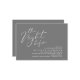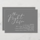 Mit unserer modernen, ästhetischen, dunkelgrauen Themendesign (The Night Before) Hochzeitsfeier Probe Einladungskarte geben Sie Ihr Glück immer wieder im Stil. Es ist ideal für Paare, die sich entschieden haben, die Nacht vor ihrem großen Tag zu feiern. Mit seinem ausgeklügelten und spielerischen Design wird diese Einladung den Ton für ein unvergessliches Ereignis Set. Die Einladungskarte bietet modernes romantisches Drehbuchdesign und verleiht Ihrem Fest eine Touch zeitloser Eleganz. Designed by TeeshaDerrick