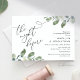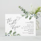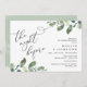 Wunderschönes modernes Romantisches Design, in Eukalyptus Blätter grüne Aquarell Thema, Hochzeit Probe Abendessen und Tanz Einladung Karte (The Night Before). Dies ist ideal für Ihr Hochzeitsfest Probe Dinner Party. Fügen Sie Ihre Feierlichkeiten Details hinzu. #TeeshaDerrick