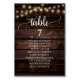 Hochzeitsessen Gast Tischkarte, Moderne rustikale Schrift, Streichlichter, Dunkelholz Hintergrund Passen Sie den Text an und / oder entfernen und füllen Sie mit Ihrem Hochzeitskonzert themed.