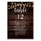 Hochzeitsessen Gast Tischkarte, Moderne rustikale Schrift, Streichlichter, Dunkelholz Hintergrund Passen Sie den Text an und / oder entfernen und füllen Sie mit Ihrem Hochzeitskonzert themed.