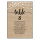 Hochzeitsessen Gast Tischkarte, Modernes Rustikales Skript, Streichlichter, brauner Holzhintergrund Passen Sie den Text an und / oder entfernen und füllen Sie mit Ihrem Hochzeitskonzert themed.