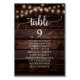 Hochzeitsessen Gast Tischkarte, Moderne rustikale Schrift, Streichlichter, Dunkelholz Hintergrund Passen Sie den Text an und / oder entfernen und füllen Sie mit Ihrem Hochzeitskonzert themed.