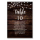Hochzeitsessen, rustikale Gästekarte Tischnummer