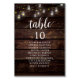 Hochzeitsessen Gast Tischkarte, Moderne rustikale Schrift, Stringleuchten mit Mason Jar, Dunkelholz Hintergrund Anpassen Sie den Text und / oder entfernen und füllen Sie mit Ihrem Hochzeitsfeier themed.