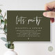 Moderne rustikale Oliven Salbei grün Thema, Hochzeit Einladung Karte (lasst uns Party). Es ist perfekt für Ihren Hochzeitsfeier Empfang / Post Hochzeitsfeier Party. Fügen Sie Ihre feierlichen Details Ihrer Hochzeit hinzu.