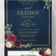 Dunkelnavy blau bordeauxfarbene, geometrische Hochzeit Einladung mit elegantem Bouquet aus Marineblau, königsblau , weiß , rot, bordeauxrot, Marsala Rose und Salbei grünen Eukalyptus-Blätter und eleganten goldenen Glitzer geometrischen neutralen Rahmen. Bitte kontaktieren Sie mich für Hilfe bei der Anpassung oder wenn Sie ein anderes Produkt mit diesem Design benötigen.