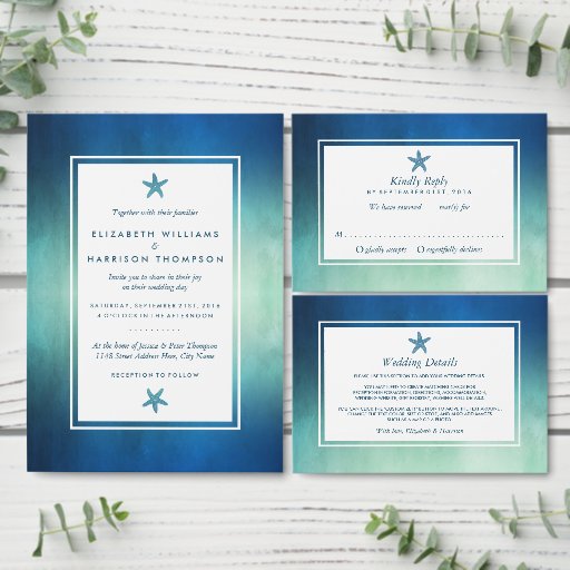 Watercolor Ocean Starfish Beach WeddingDesignt von Fehmi Designs