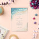 Diese elegante Hochzeitseinladung an der Küste bietet eine handgemalte Aquarelllandschaft in der Ecke mit Ozeanwellen am Meeresufer.