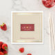 Ihre eigenen Initialen und ein kleines Herz der Liebe, mit Monogramm auf einer schönen rötlichen Standard-Papier-Serviette... mit eigenem Text "Danke, dass Sie mit uns feiern".