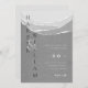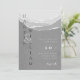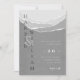 Moderne, minimalistisch graue Hochzeitseinladung mit einem Bild von zerrissenen Papierbergen. Moderne vertikale Schrift mit dem Namen der Braut und des Bräutigams.