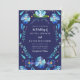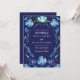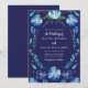 Die "Navy Blue Mexican Floral Fiesta Wedding Invitation" präsentiert sich mit einem aufwändigen Design von handbemalten Aquarellblumen auf einem tiefen marineblauen Hintergrund. Diese Einladung strahlt Eleganz aus, mit einer lebhaften Auswahl blauer Blumenmuster. Der knallige, weiße Text kontrastiert elegant mit dem reichen marinen Hintergrund und fügt dem Design eine Touch von Eleganz hinzu. Diese Einladungen, die den lebendigen Geist eines mexikanischen Festes einfangen, Set der Bühne für ein Fest voller Freude und lebendiger Energie.