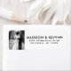Elegantes White Wedding Rücksendeetikett Foto mit einem schwarzen Gradmütze und dem Namen und der Adresse der Hochzeit in modern .