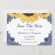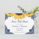 Rustikales marineblau und Sonnenblumen Hochzeitskartentchen Foto speichern Sie die Dattelkarten. Matching-Elemente verfügbar.
