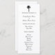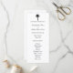 Elegantes Schwarz-Weiß Hochzeitsfeierungsprogramm mit schicker Silhouette aus Palmen. Klassische leere Vorlage mit stylischer Schriftzeichen. Teil des wunderschönen, passenden Küsten-Thema Sammlung Set. Trendy inspirierende Schreibwaren Design für klassische Braut und Bräutigam Heiraten. Umfasst individuelle Namen, Datum, Ort, Reihenfolge der Zeremonie und Hochzeitsfeier. Hübsches Heiratszubehör und Zubehör für die Planung Ihrer extravaganten Hochzeit, Brautparty, Verlobung und vieles mehr. Tropisches Meer und exotische Hochzeit in Urlaubsort. Luxuriöser Stil.