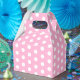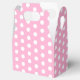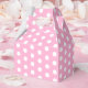 Gefälligkeitskasten in einem rosa-weißen Polka-Dots-Druck. Tipp: Fügen Sie ihm ein Band hinzu. Passen Sie dieses Objekt an oder kaufen Sie, wie es ist.