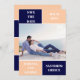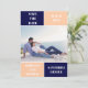 Navy Blau und Peach Farbe Block Hochzeit Speichern Sie die Date-Karte. Auf der Rückseite befindet sich ein Muster mit breiten Bändern in marineblau und pfirsichblau.
